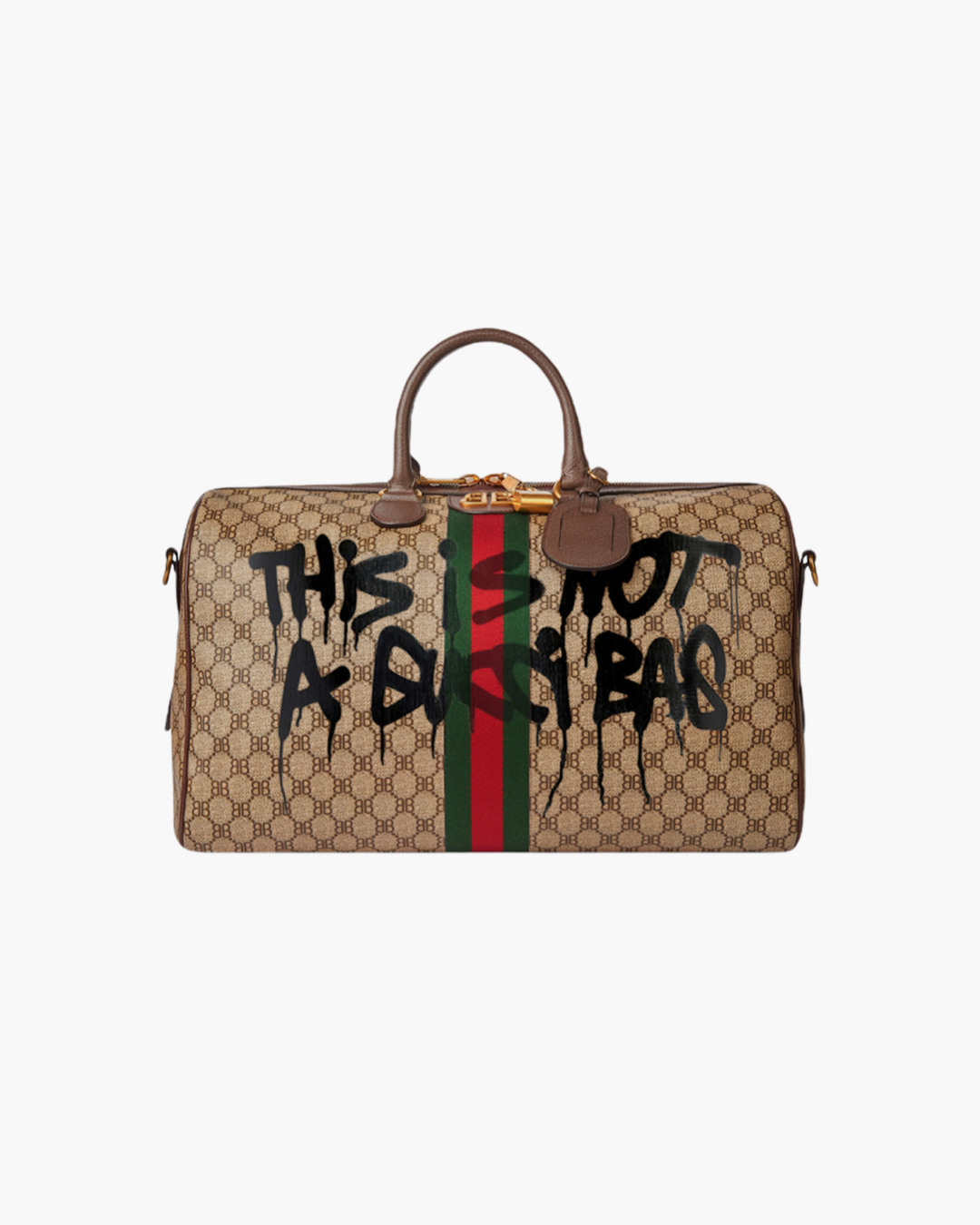 Le Sac De Voyage Hacker Graffiti Moyen Modèle en toile enduite beige et marron avec finitions coloris or vieilli fait partie de The Hacker Project.