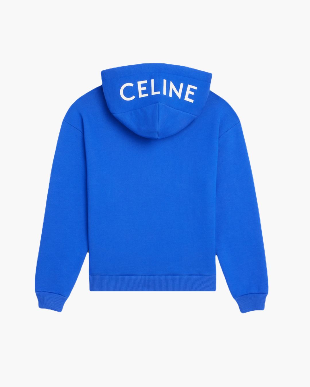 SWEAT LOOSE CELINE MOLLETON COTON BLEU ROI / OFF WHITE 590 EUR SWEAT LOOSE CAPUCHE IMPRIMÉ CELINE MOLLETON DE COTON